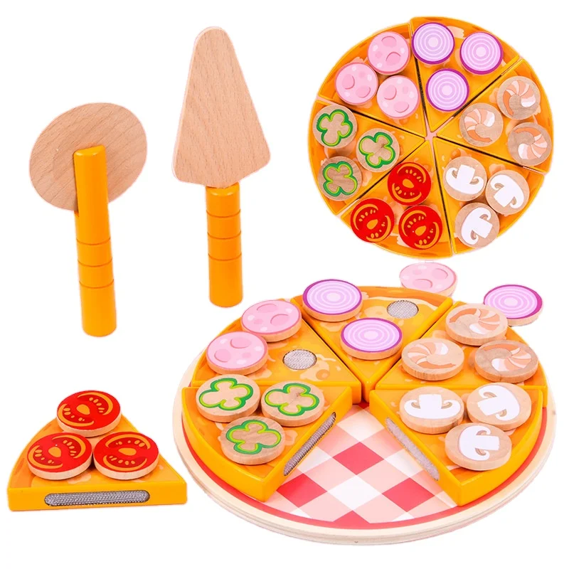 Children's Wooden Pizza Kitchen & Food Puzzle Pretend Play Cutting Toy